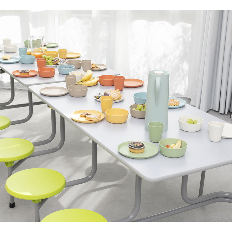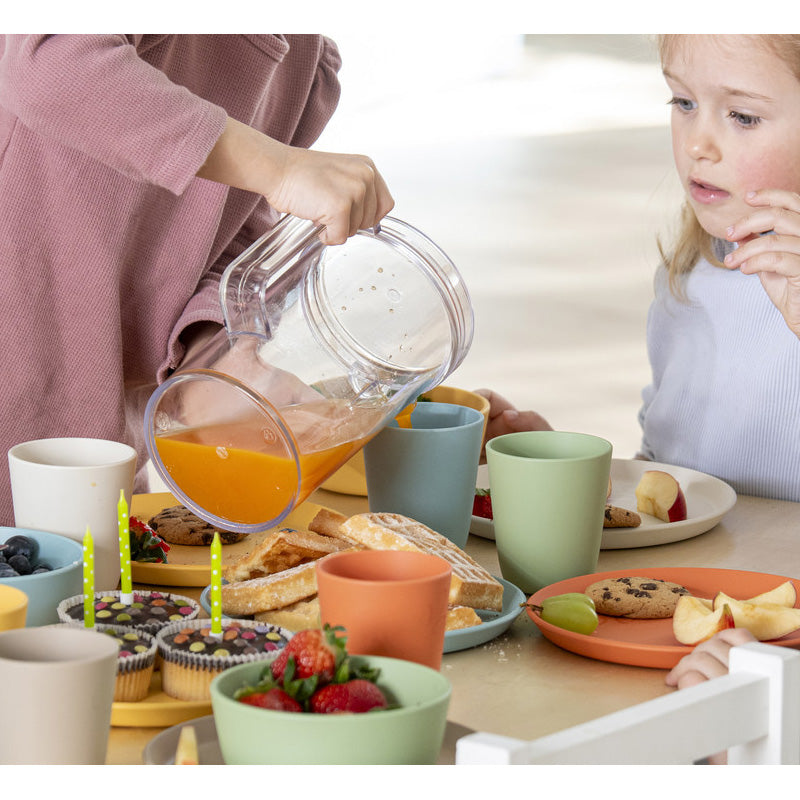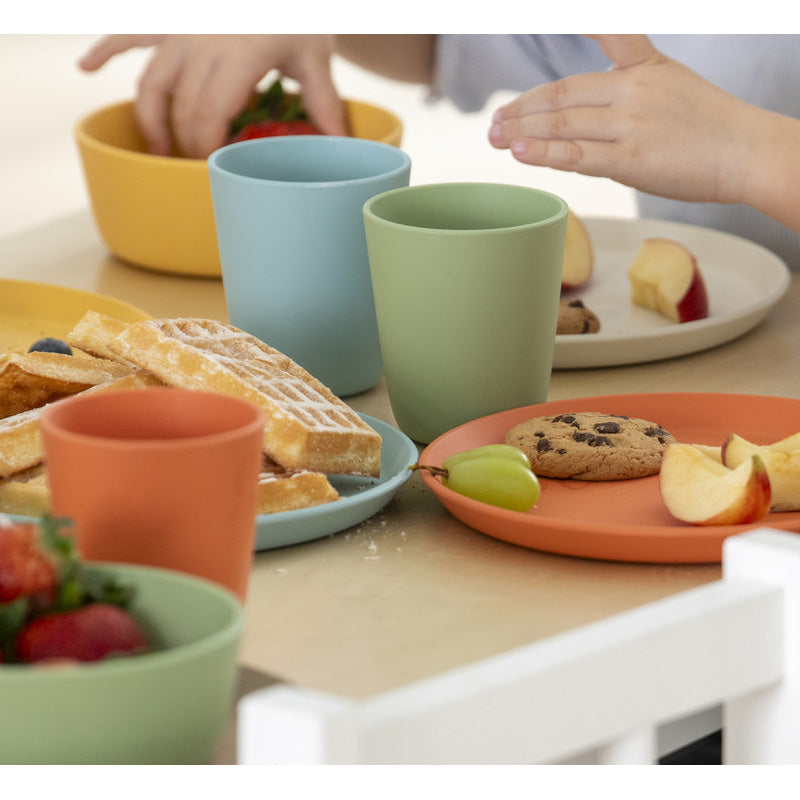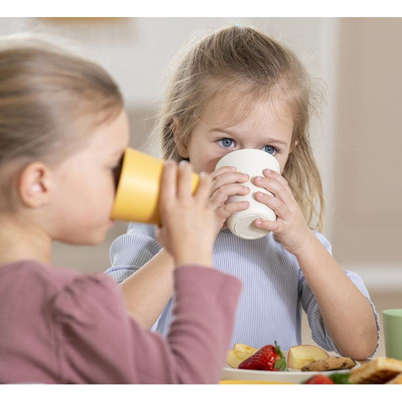 Com um design moderno em cores naturais e detalhes decorativos em forma de três folhas brilhantes estes copos são ideais para refeições, lanches ou atividades lúdicas. Graças ao tamanho ergonómico, as crianças podem segurar facilmente os copos, e, mesmo que caiam, não se partem.