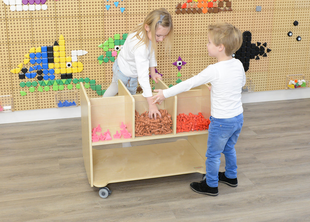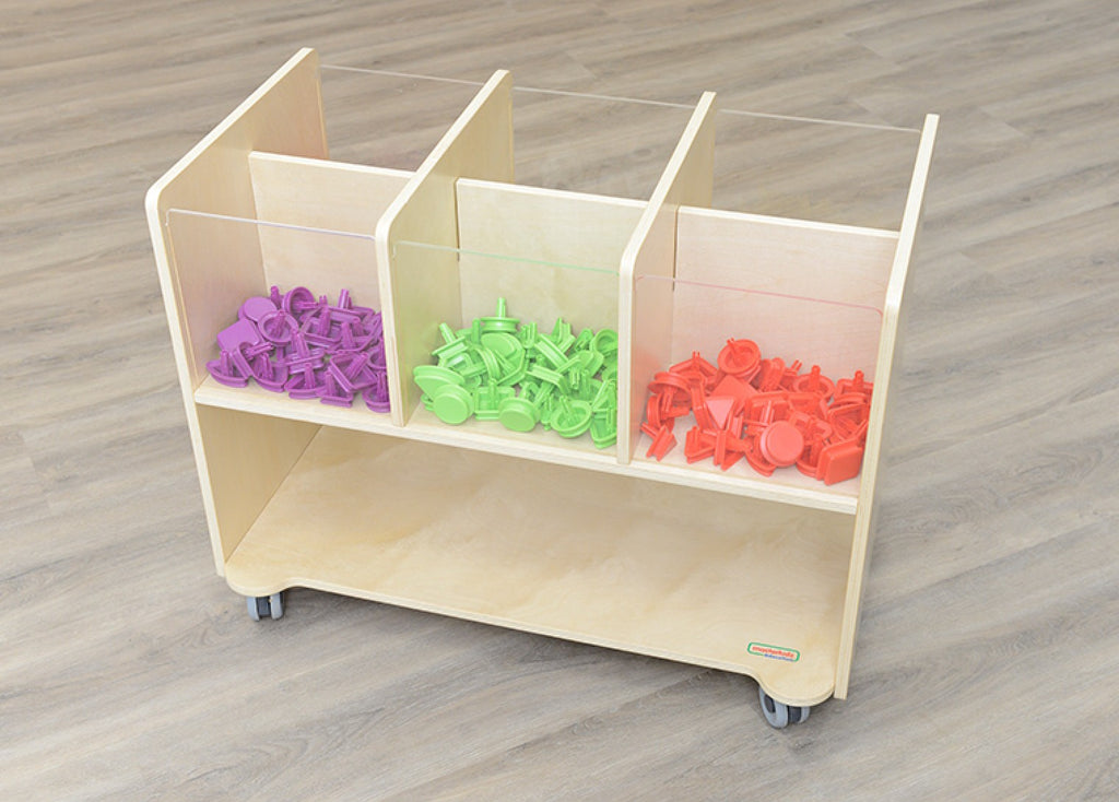 ✔️ 6 compartimentos visíveis – a parte superior possui frentes em acrílico transparente, permitindo ver facilmente o conteúdo e promover a autonomia das crianças.