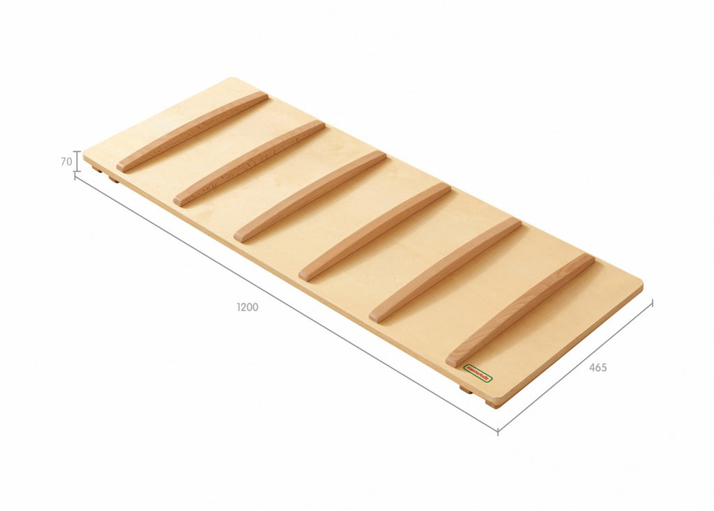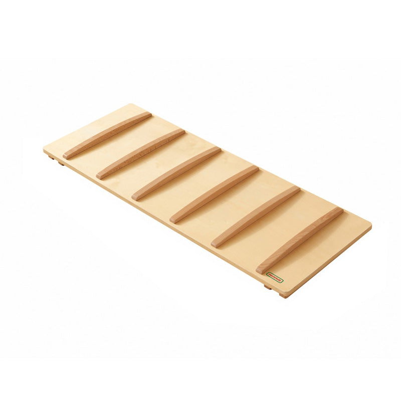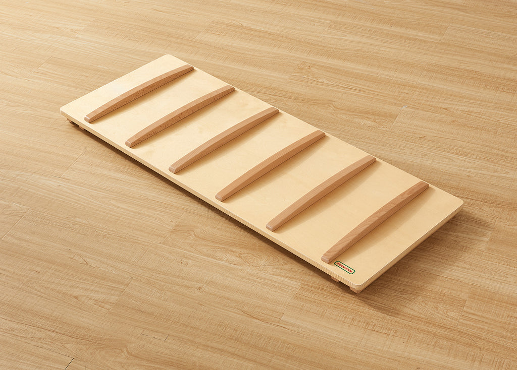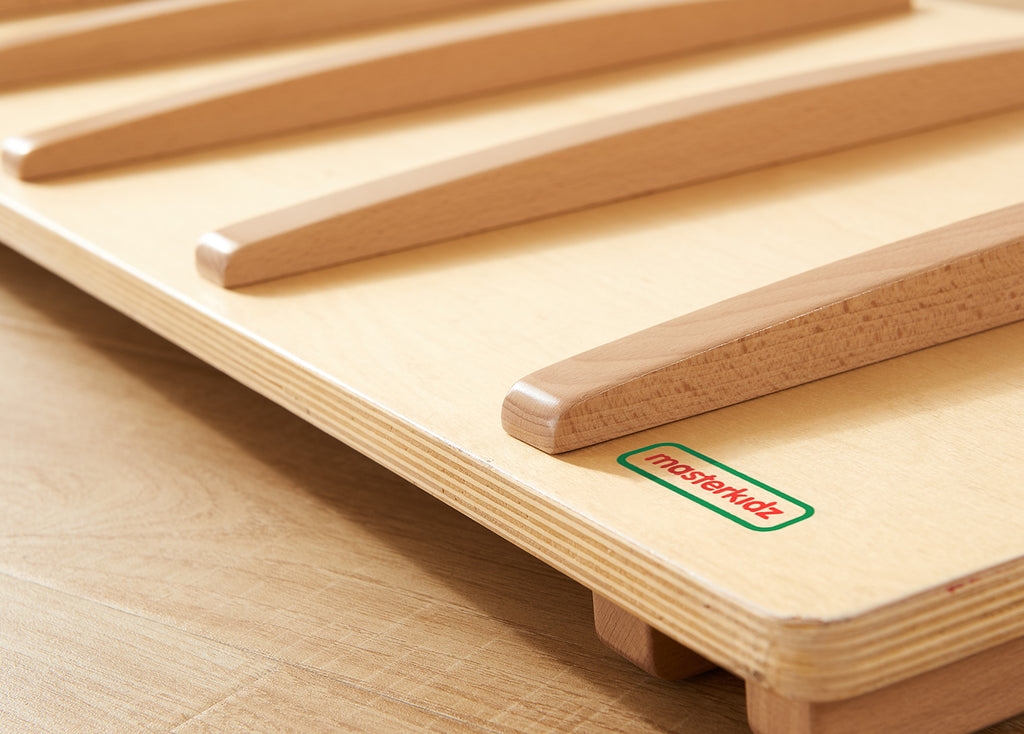 ✔️ Sistema de encaixe prático – inclui batentes de fixação que permitem prender facilmente a rampa ao Triângulo ou Arco de Pikler, criando planos inclinados ou retos.