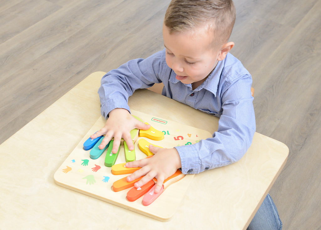O Tabuleiro de Contagem com Dedos é um recurso educativo divertido e interativo que ajuda as crianças a aprender a contar de 1 a 10 de forma visual e tátil. Ideal para creches, pré-escolar e ensino básico, este brinquedo pedagógico em madeira incentiva o desenvolvimento das primeiras competências matemáticas através da brincadeira.